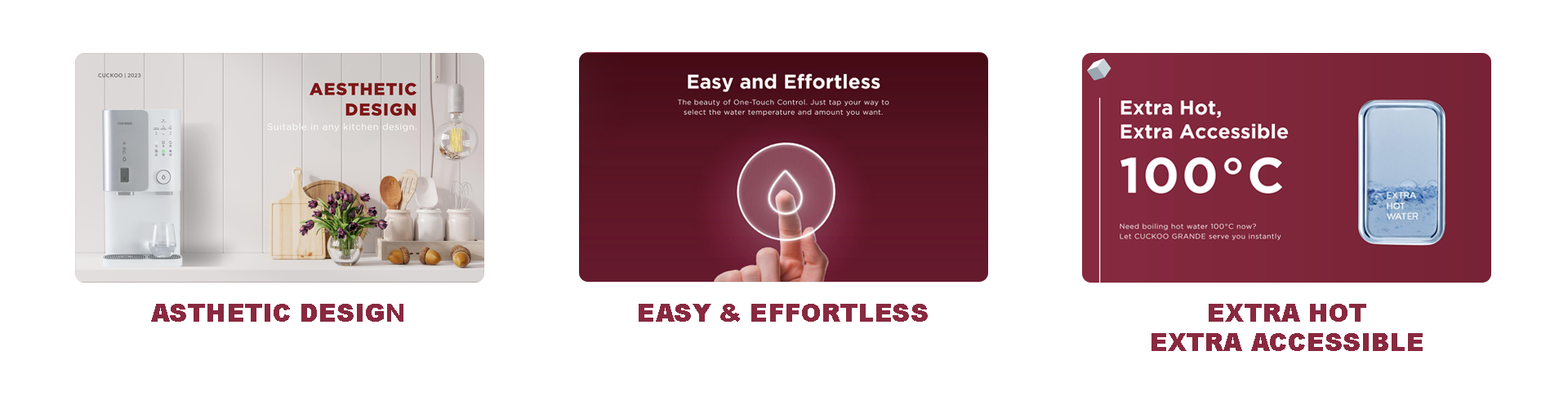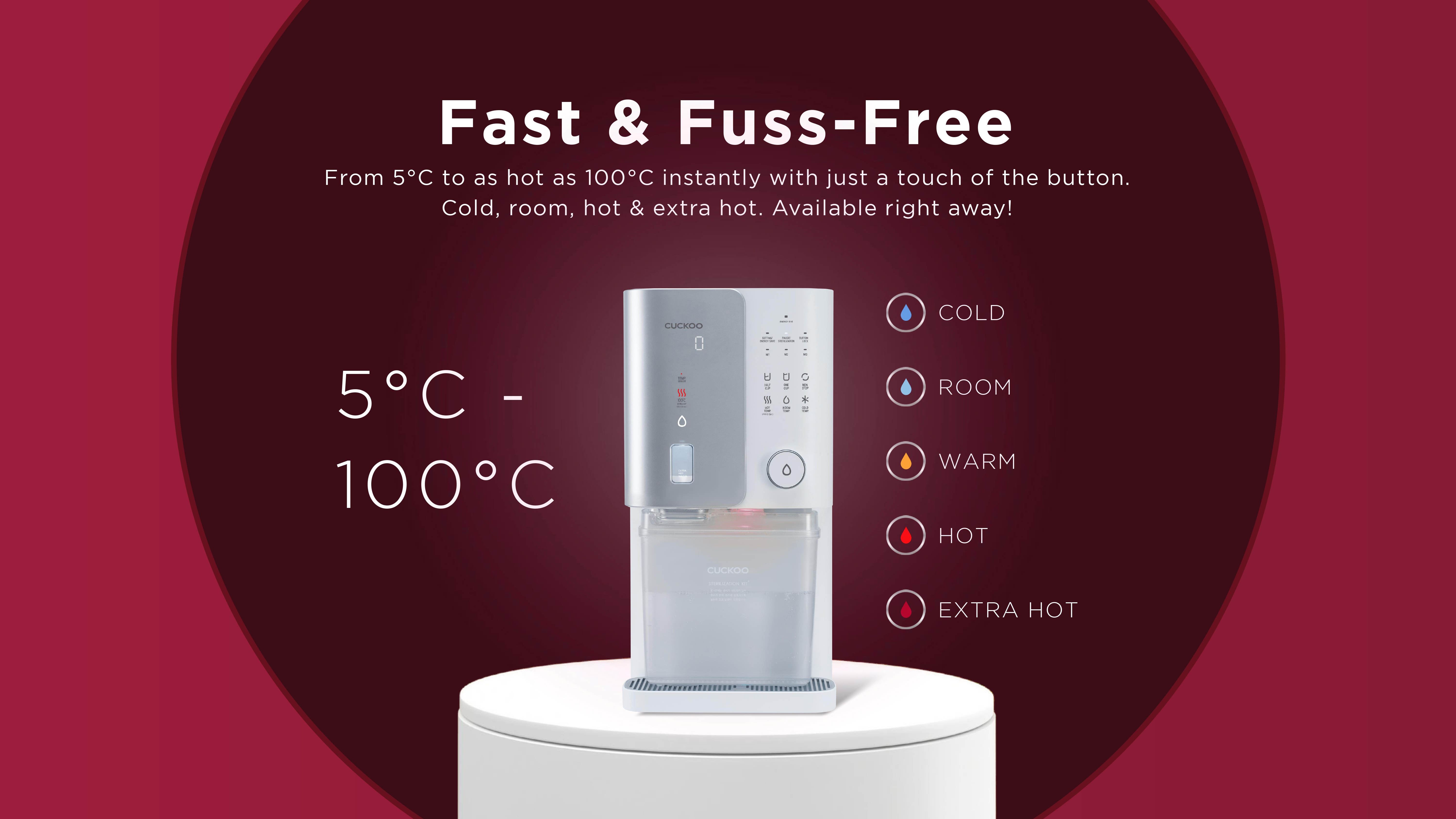 Want boiling hot water at 100°C now? Let CUCKOO GRANDE serve it to you in seconds.